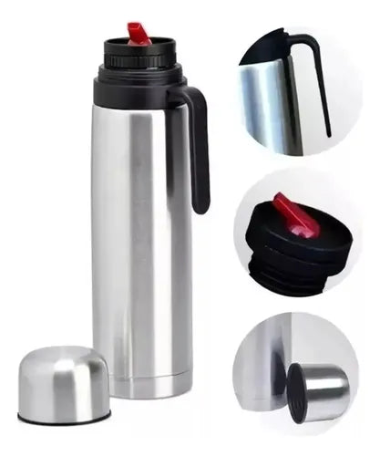 El Termo de 1 Litro con media manija es la inversión perfecta para tu día a día. Su doble pared de acero inoxidable garantiza que tus bebidas mantengan la temperatura ideal por horas, estés donde estés. ¡Diseño robusto, agarre cómodo y la durabilidad que necesitás!